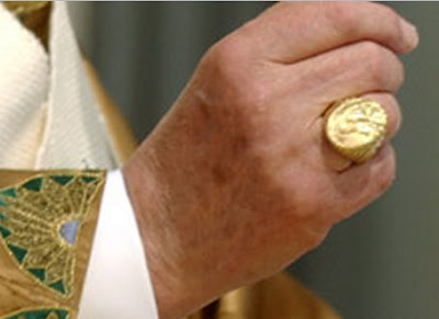 The Pope wears a “Ring of the Fisherman” mocking Mark 1:17